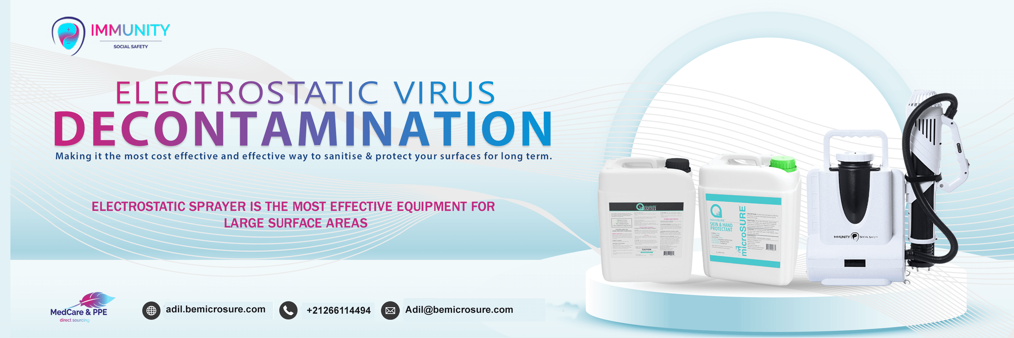 We can also provide you with an Electrostatic sprayer and MicroSURE surface protectant, which are
